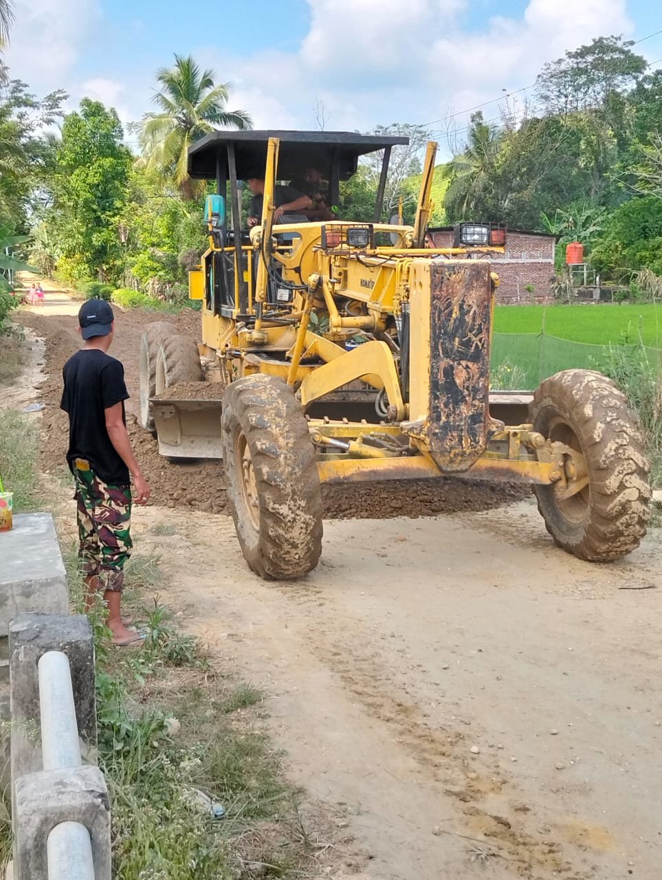 Jalan desa yang menjadi salah satu sasaran fisik TMMD ini kini mulai tertata berkat bantuan alat berat tersebut. Motor Grader dinilai efektif dalam mempercepat proses pemerataan material timbunan, sehingga permukaan jalan lebih rata dan siap digunakan.