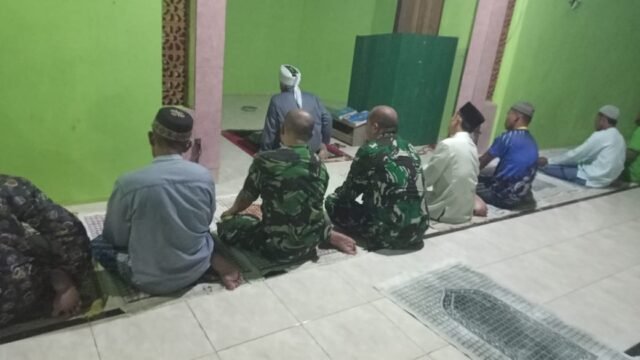 BARITO KUALA – Senja mulai turun di Desa Tumih, Kecamatan Wanaraya. Cahaya jingga memantul di dinding Mushola Nurul Iksan, tempat di mana derap langkah prajurit berseragam loreng berpadu dengan langkah warga desa yang membawa sajadah. Tak ada perintah, tak ada komando. Hanya panggilan azan Maghrib yang menyatukan semuanya.