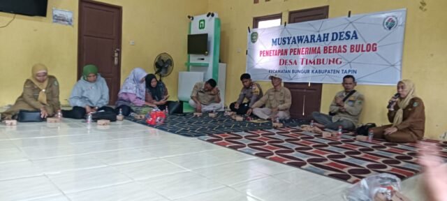 TAPIN – Bertempat di Kantor Desa Timbung, Kecamatan Bungur, Kabupaten Tapin, pada Selasa (4/11), dilaksanakan Musyawarah Desa Penetapan Penerima Beras Bulog. Kegiatan ini bertujuan memastikan penyaluran bantuan beras Bulog tepat sasaran dan sesuai dengan kriteria penerima manfaat yang telah ditetapkan pemerintah.