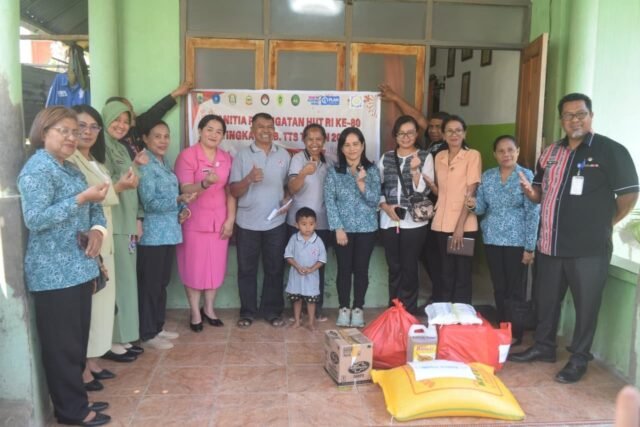 SoE, 14 Agustus 2025 – Dalam rangka memperingati Hari Ulang Tahun (HUT) Kemerdekaan Republik Indonesia ke-80, Ibu Ketua Persit Kartika Candra Kirana Cabang XX Dim 1621/TTS, Ny. Sari Gunawan, bersama Ibu Bupati dan Forkopimda Kabupaten Timor Tengah Selatan (TTS) melaksanakan kegiatan anjangsana dengan membagikan sembako kepada anak-anak panti asuhan dan masyarakat sekitar.