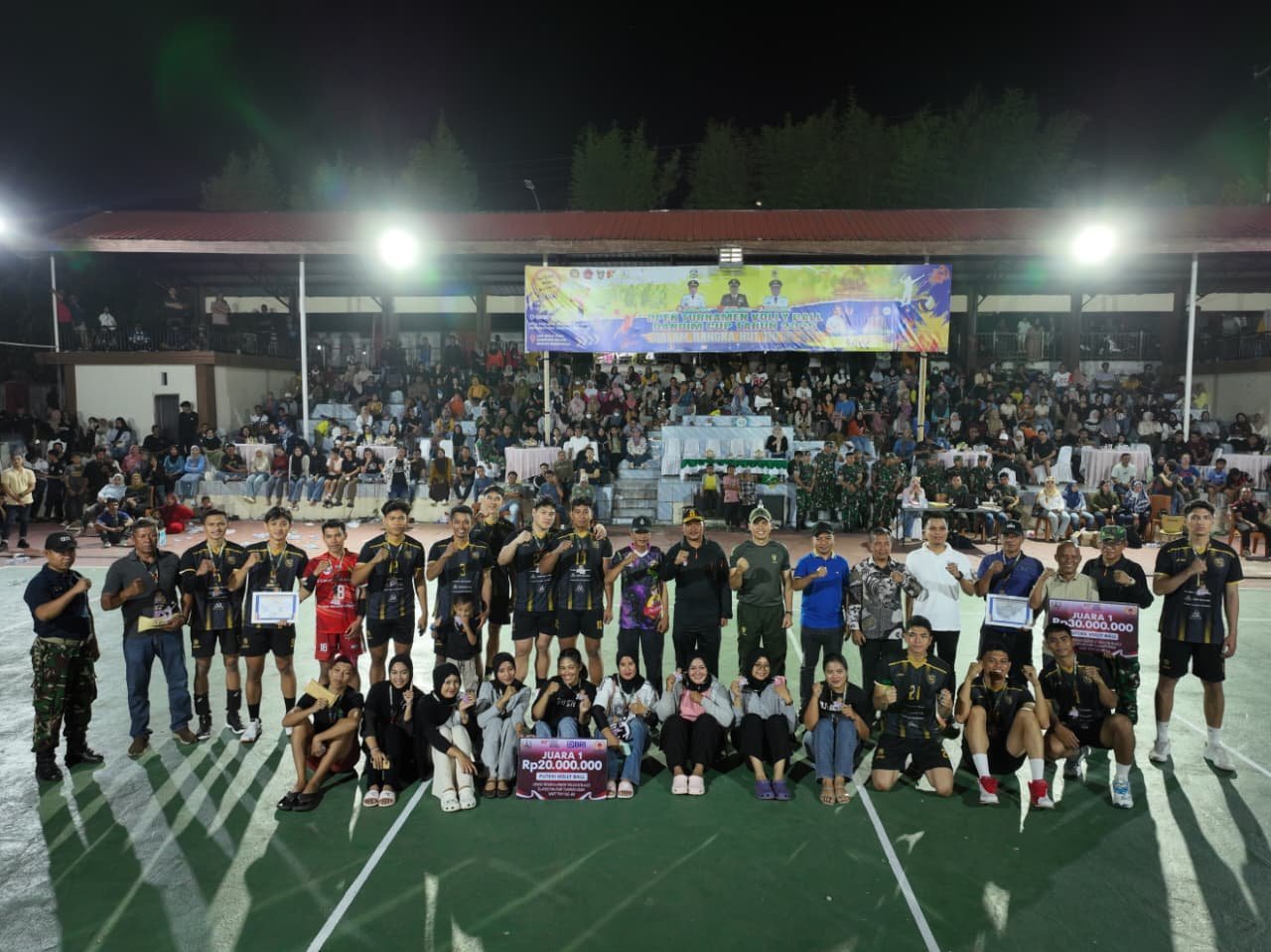MOROWALI, – Open Tournament Volly ball Dandim Cup dalam rangka memperingati HUT TNI ke-80 resmi ditutup dengan meriah di Lapangan Volly Ball Desa Matansala, Kecamatan Bungku Tengah, Kabupaten Morowali. (Sabtu, 11 Oktober 2025).