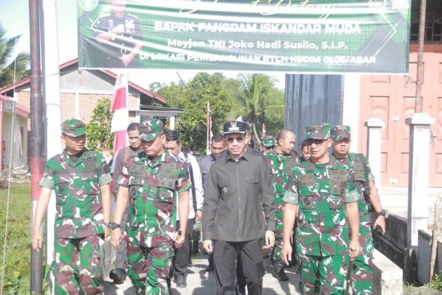 Aceh Barat – Komandan Kodim (Dandim) 0105/Aceh Barat, Letkol Inf Hendra Mirza, S.E., M.Si., mendampingi Pangdam Iskandar Muda (IM) Mayjen TNI Joko Hadi Susilo, S.I.P., menyerahkan kunci Rumah Tidak Layak Huni (RTLH) secara simbolis kepada Syahril Efendi (54), salah seorang warga dhuafa yang berdomisili di Jalan Generasi Dusun Mesjid, Desa Seuneubok, Kecamatan Johan Pahlawan, Sabtu (27/09/2025).