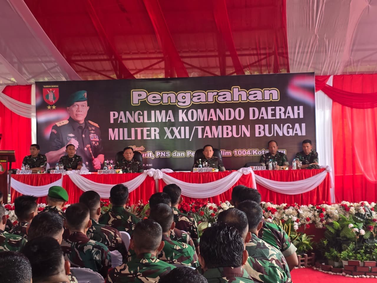 KOTABARU – Panglima Komando Daerah Militer (PANGDAM) XXII/Tambun Bungai, Mayjen TNI Zainul Arifin, S. A. P., M. SC, melaksanakan kunjungan kerja (Kunker) di Markas Komando Distrik Militer (Makodim) 1004/Kotabaru pada hari Rabu, 5 November 2025. Kunjungan ini bertujuan untuk melakukan pembinaan satuan, mengecek kesiapan prajurit, dan memberikan arahan strategis, khususnya terkait dukungan terhadap program-program nasional.