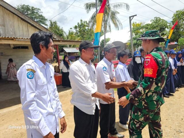 Kedatangan Dansatgas disambut meriah oleh para guru sekolah dasar dan menengah yang turut hadir di lapangan. Mereka dengan antusias menyapa dan memberikan apresiasi atas kehadiran TNI yang telah banyak membantu pembangunan di wilayah tersebut, khususnya dalam memperbaiki akses jalan menuju sekolah dan fasilitas umum.