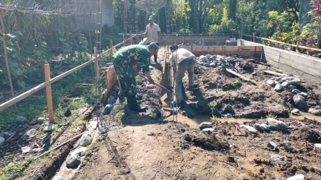 ACEH BARAT – Untuk mendorong perekonomian sekaligus memotivasi warga pelaku Usaha Mikro Kecil dan Menengah (UMKM), Babinsa Koramil 04/Meureubo Kodim 0105/Abar, Serma Ngadiso, turut membantu pembangunan kios kelontong milik salah satu warga di Desa Paya Peunaga, Kecamatan Meureubo, Sabtu (22/11/2025). Kegiatan tersebut dilakukan saat pembangunan masih pada tahap pembuatan pondasi dasar.