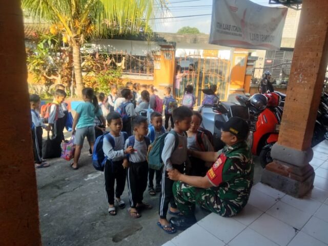 Hal tersebut kembali diwujudkan Babinsa jajaran Koramil 1610-01/Klungkung ini saat mendampingi anak-anak TK Negeri Semarapura Kaja yang melaksanakan kegiatan renang ke Srinadi Waterpark Klungkung, Sabtu ( 18/10/25 ).