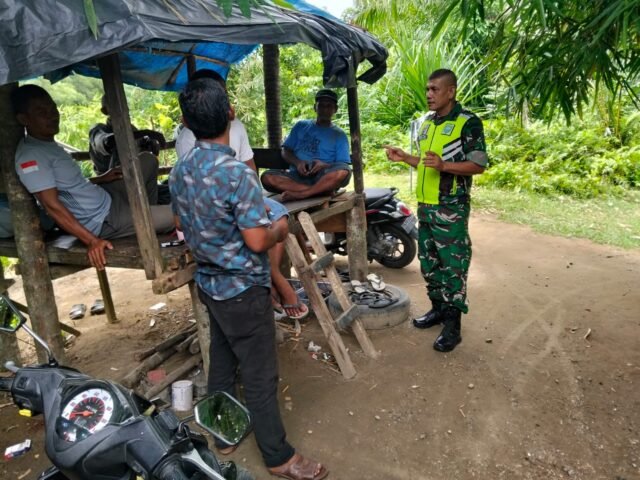 ACEH BARAT – Pelda T. Fahrial Putra dari Koramil 03/Kaway XVI Kodim 0105/Aceh Barat melaksanakan kegiatan Komunikasi Sosial (Komsos) di Desa Beureugang, Kecamatan Kaway XVI, Kabupaten Aceh Barat, Rabu (15/10/2025).