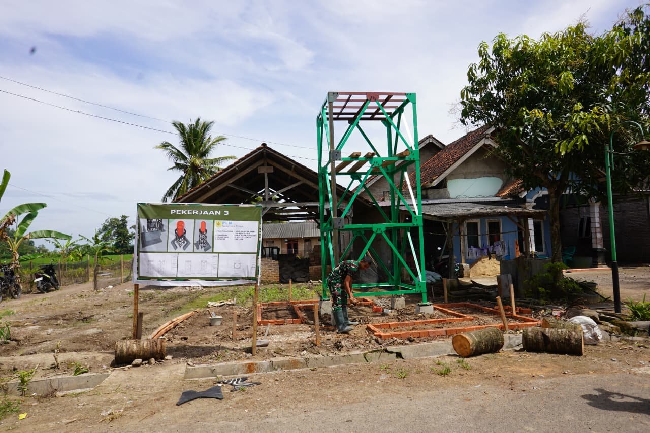 Pemasangan Tiang Tower untuk Akses Air Bersih di Desa Tanjung Rejo oleh TMMD ke-127