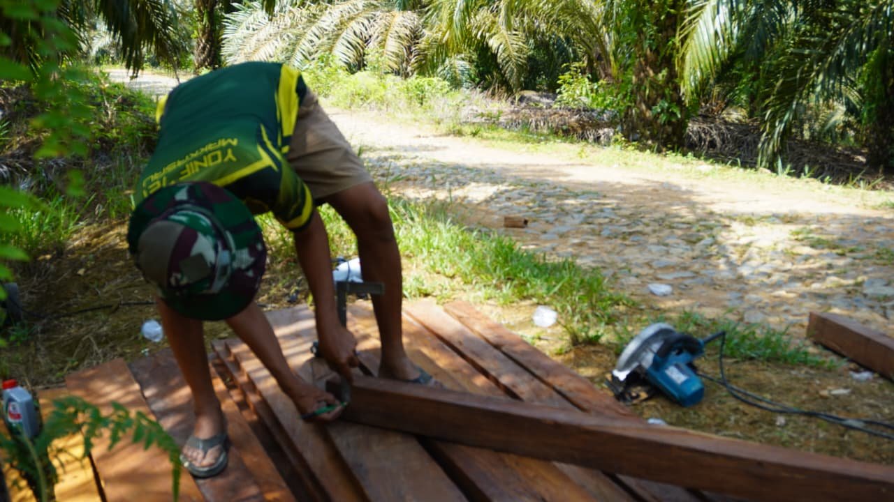 Di lokasi proyek, anggota Satgas TMMD telah mulai mempersiapkan tiang-tiang kayu sebagai pondasi dari jembatan yang akan dibangun. Persiapan ini dilakukan dengan penuh perhatian agar struktur jembatan yang dihasilkan dapat kuat dan aman untuk digunakan oleh warga dalam mengangkut hasil perkebunan mereka.
