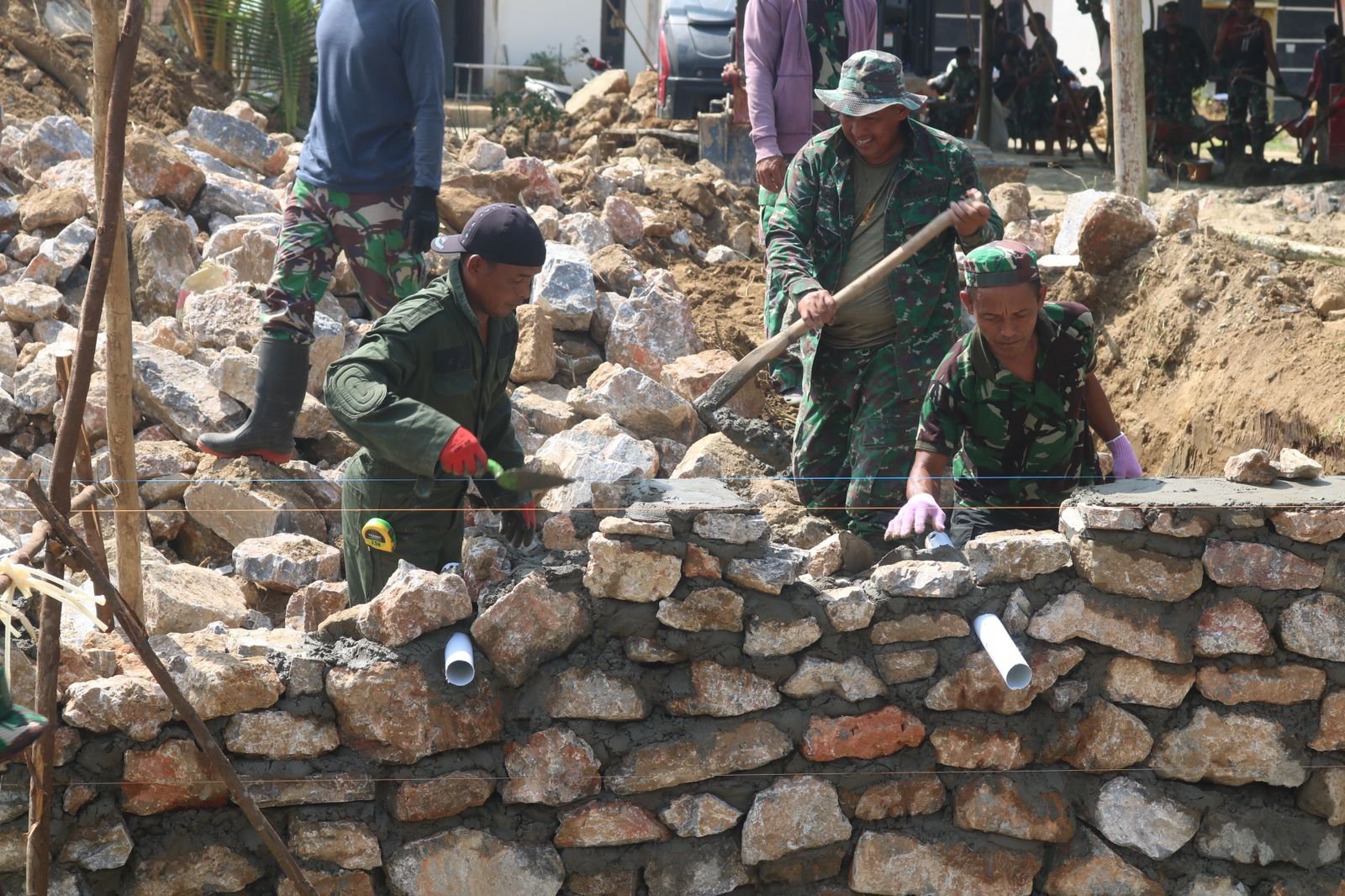 Kendari – Pada Minggu, 15 Februari, personel dari Satgas TMMD ke-127 yang berada di bawah komando Kodim 1417/Kendari terus melanjutkan pembangunan jembatan di Kelurahan Sambuli. Proyek pembangunan ini sedang dikebut pada pertengahan bulan Februari untuk memastikan bahwa jembatan dapat diselesaikan sesuai dengan jadwal yang ditentukan.