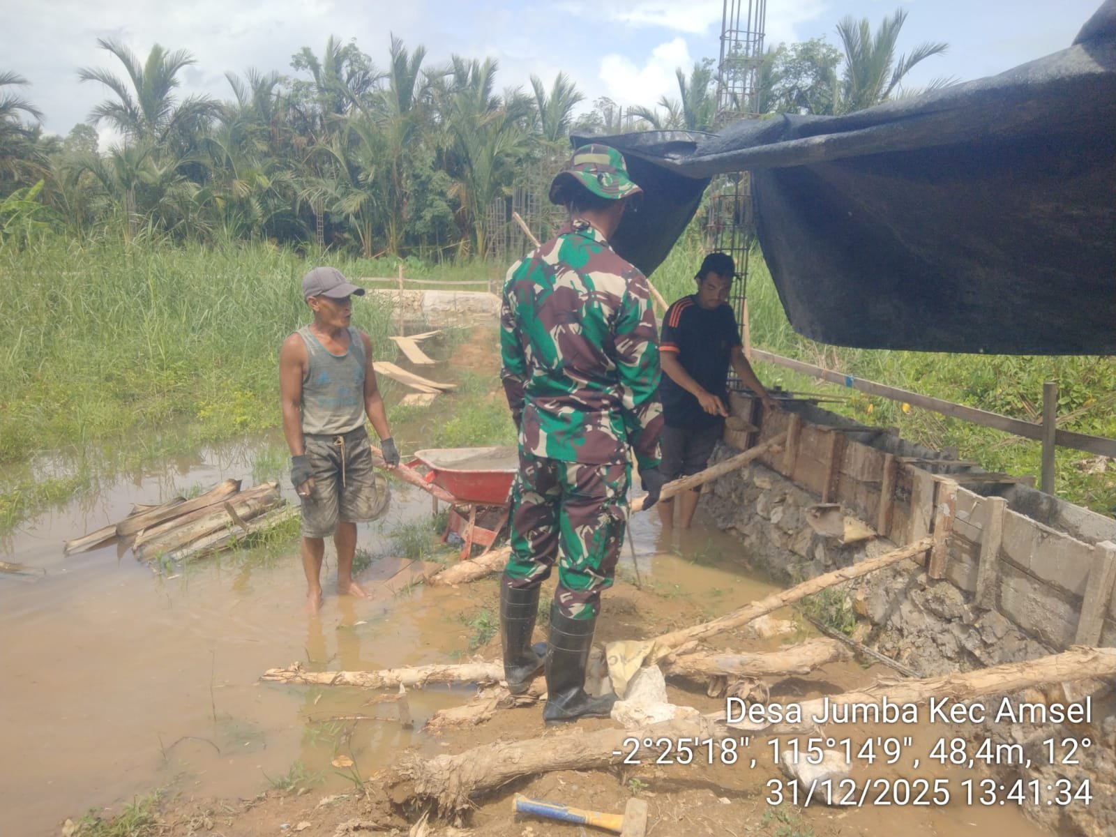 Kegiatan pembangunan tersebut berlokasi di Desa Jumba, Kecamatan Amuntai Selatan, Kabupaten Hulu Sungai Utara. Pada hari ini, personel TNI bersama masyarakat melaksanakan pengerjaan pengecoran sloof sebagai bagian dari tahapan struktur bangunan.