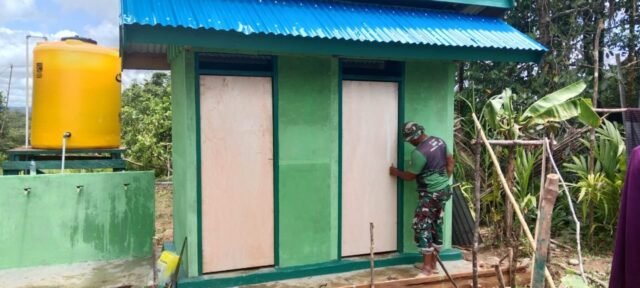 Bangunan MCK yang tampak megah dengan dominasi warna hijau dan atap biru ini menjadi simbol perhatian TNI terhadap kesehatan masyarakat di pedalaman Papua. Fasilitas dua bilik tersebut dirancang agar nyaman, higienis, dan mudah diakses oleh seluruh warga setempat.