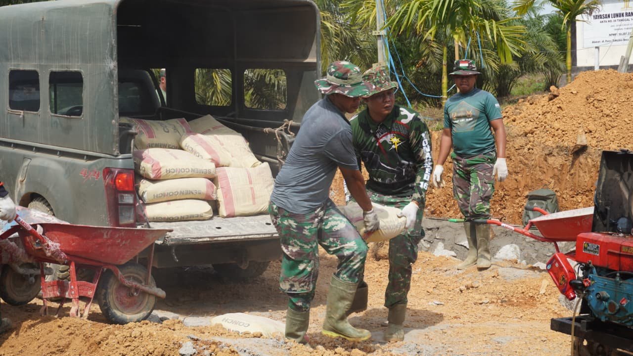 Kotawaringin Timur – Anggota Satuan Tugas (Satgas) TMMD Reguler ke-127 dari Kodim 1015/Sampit telah melakukan penurunan material semen yang akan digunakan untuk pembangunan siring jalan di Desa Tri Buana, Kecamatan Telaga Antang, Kabupaten Kotawaringin Timur, pada hari Jumat (13/02/2026).