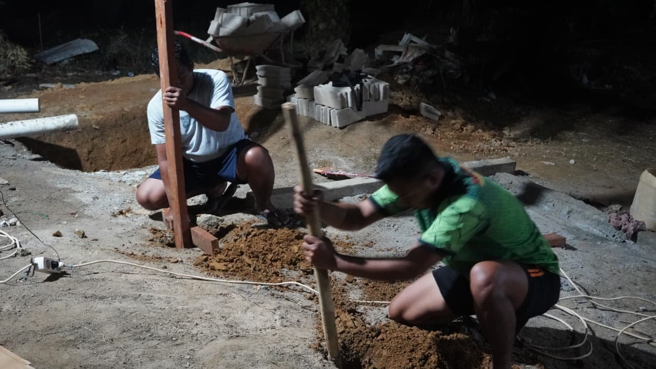 Pembangunan tandon air ini dikerjakan oleh anggota Satgas TMMD di dekat Gereja Pelita Kasih, sebagai upaya untuk menyediakan fasilitas penampungan air bersih bagi masyarakat setempat.
