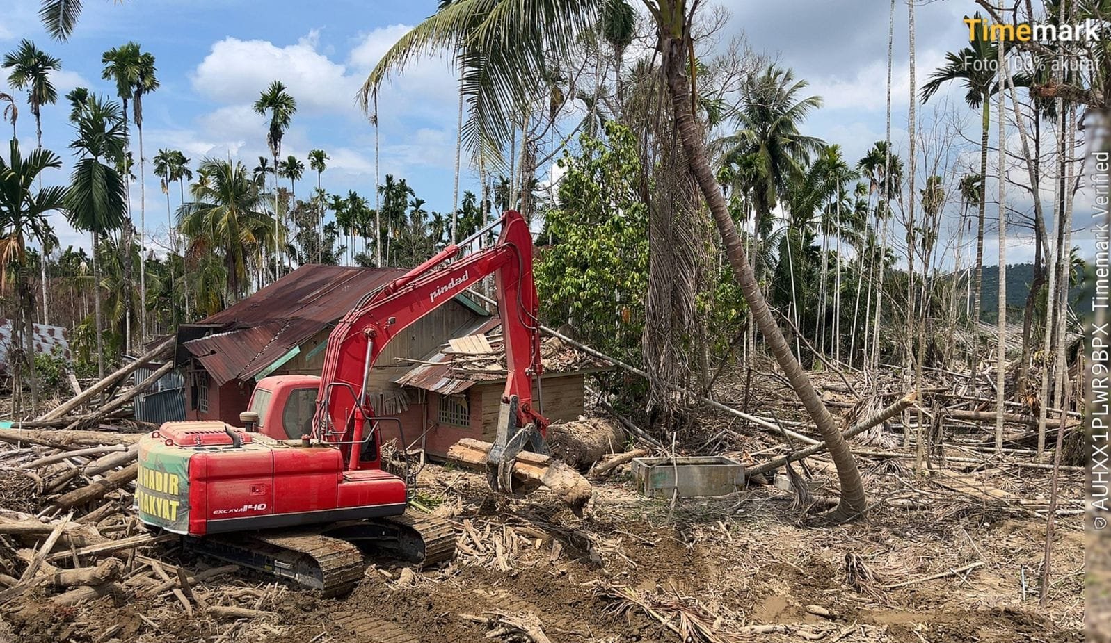 Di lokasi, alat berat jenis beko terlihat aktif mengangkat dan memindahkan tumpukan kayu yang berserakan akibat bencana banjir. Pembersihan material kayu yang menumpuk di sekitar rumah warga serta kebun ini menjadi prioritas utama untuk mencegah kerusakan lebih lanjut dan mempercepat pemulihan aktivitas masyarakat.
