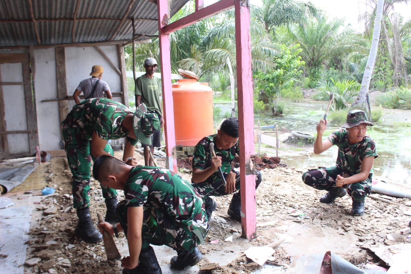 Pembongkaran RTLH Ibu Suharti Dimulai oleh Satgas TMMD 127 di Banyuasin