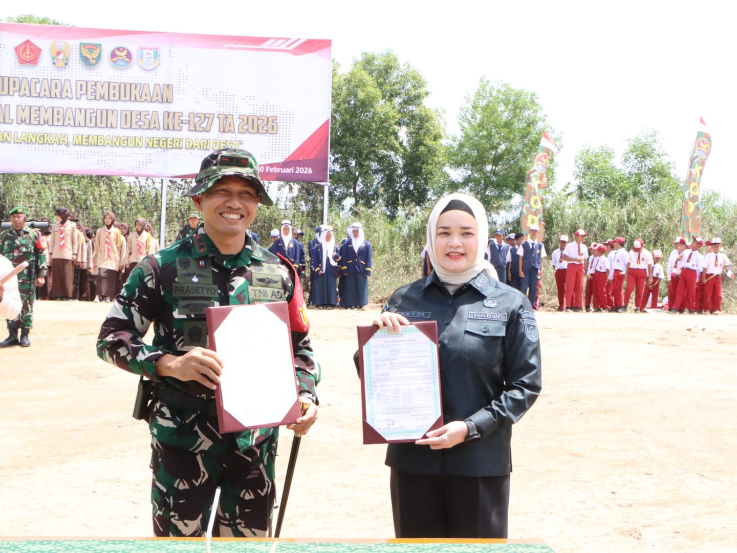 Banyuasin – Upacara pembukaan program TNI Manunggal Membangun Desa (TMMD) Ke-127 Tahun Anggaran 2026 yang diselenggarakan oleh Kodim 0430/Banyuasin resmi dilakukan pada Selasa, 10 Februari 2026, mulai pukul 10.30 WIB. Acara tersebut berlangsung di Desa Wonosari, Kecamatan Pulau Rimau, Kabupaten Banyuasin, Sumatera Selatan. Pembukaan program ini dipimpin langsung oleh Wakil Bupati Banyuasin, Netta Indian, S.P.