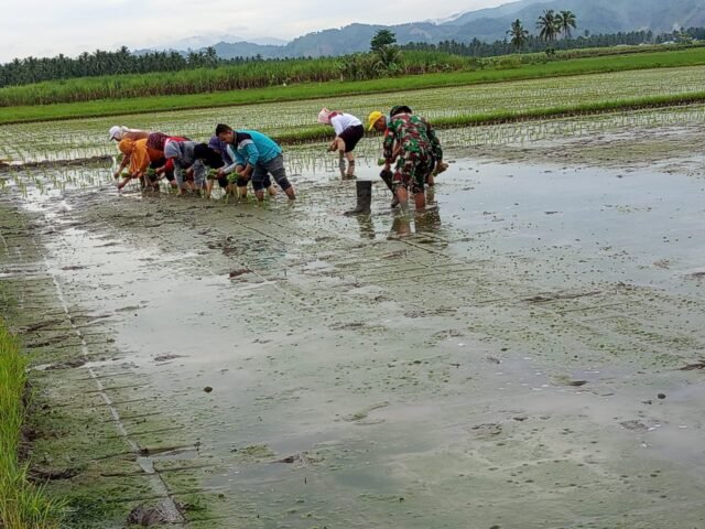 BOALEMO – Prajurit Kepala (Praka) Abdul Rivai Usman, Babinsa Koramil 1316-02/Paguyaman, turut serta mendampingi kegiatan penanaman padi sawah yang sukses dilaksanakan di Desa Rejonegoro, Kecamatan Paguyaman, Kabupaten Boalemo, pada Jumat (27/06/2025). Kegiatan ini merupakan wujud sinergi antara TNI dan Balai Standarisasi Instrumen Pertanian (BSIP) Provinsi Gorontalo dalam upaya meningkatkan produktivitas pertanian dan kesejahteraan petani di wilayah tersebut.