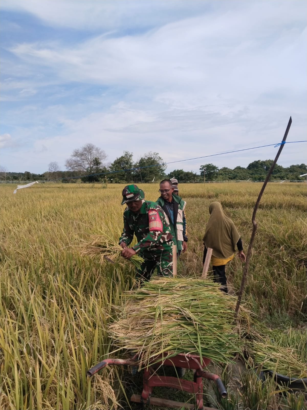 KOTABARU – Dalam rangka mendukung program swasembada pangan nasional, Koramil 1004-11/Plb-Plts melaksanakan kegiatan pendampingan pertanian dengan menghadiri panen padi sawah bersama Kelompok Tani Sri Barokah di Desa Bangunrejo, Kecamatan Pulau Laut Tanjung Selayar, Kabupaten Kotabaru, Kamis (5/2/2026).