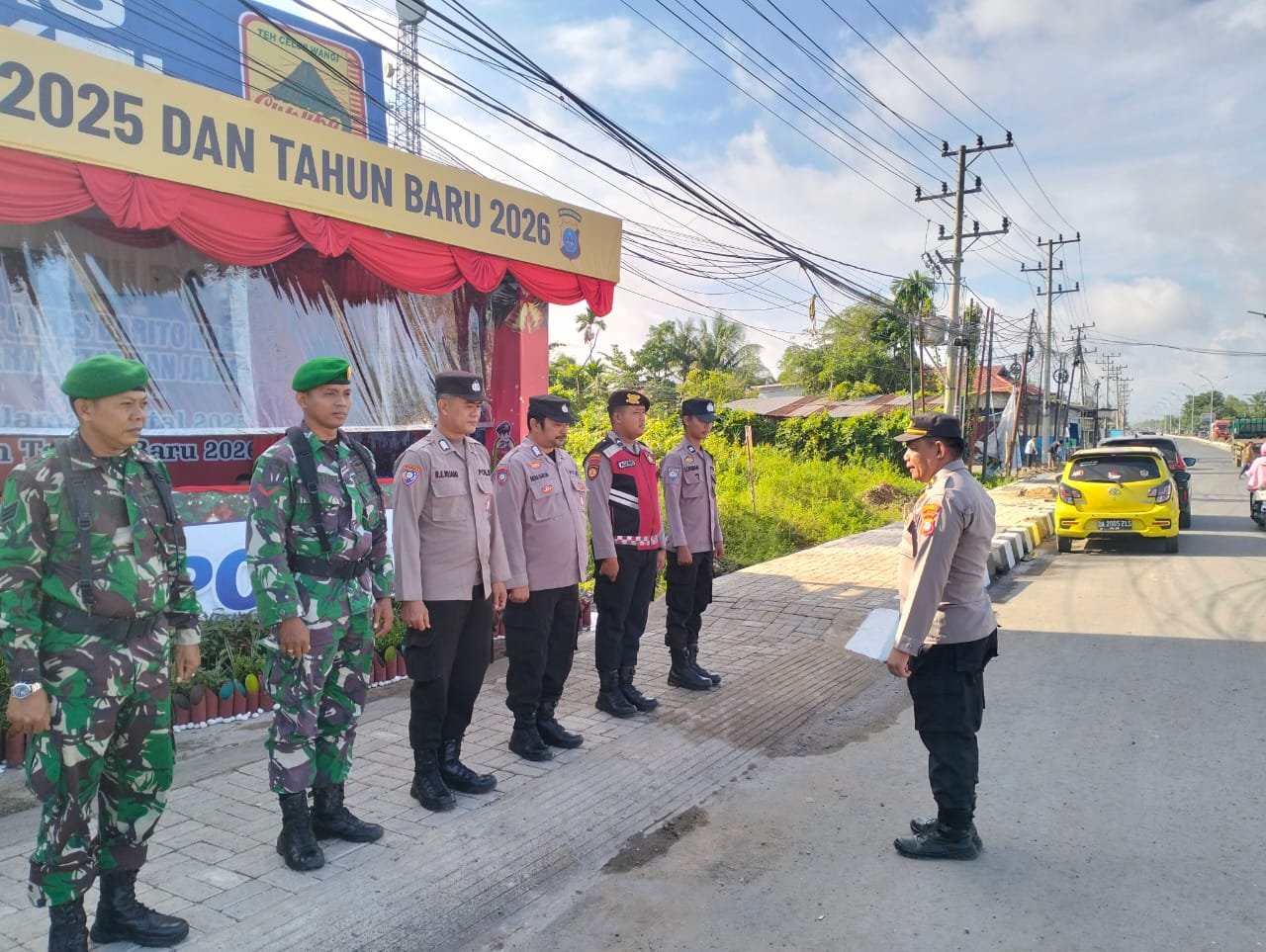 Barito Kuala – Untuk mendukung kelancaran serta menjaga keamanan masyarakat selama perayaan Natal 2025 dan Tahun Baru 2026, Kodim 1005/Barito Kuala bersama unsur terkait melaksanakan kegiatan Pos Pengamanan (Pos Pam) dan Pos Pelayanan di Simpang 4 Handil Bakti, Kecamatan Alalak, Kabupaten Barito Kuala, pada Jumat (26/12).