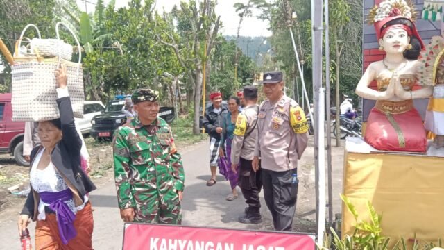 Bangli – Babinsa Desa Pinggan Serka I Dewa Nyoman Alit Adnyana bersama Bhabinkamtibmas Desa Pinggan Aiptu Anak Agung Aryana, anggota Polsek Kintamani, serta Pecalang Desa Adat Pinggan melaksanakan kegiatan pengamanan upacara Karya Panca Wali Krama Purnama Kelima di Pura Dalem Balingkang.Sabtu (08/11/2025).