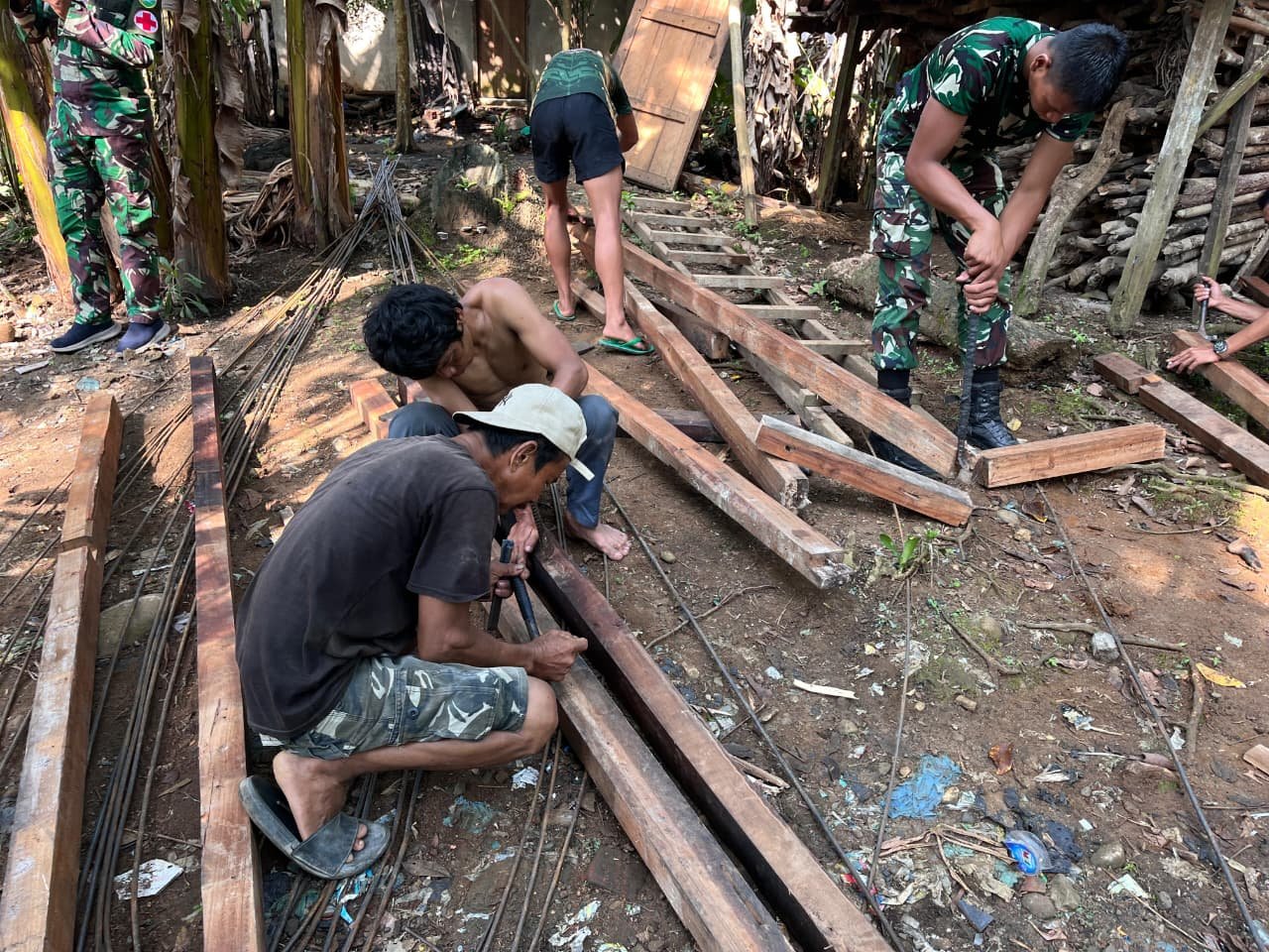 Personel Satgas bekerja sama dengan sejumlah tukang untuk melaksanakan pengerjaan kusen dengan intensif. Hal ini dilakukan untuk memastikan bahwa setiap elemen bangunan memiliki standar kualitas yang baik, sehingga siap untuk tahap berikutnya. Kusen yang dibuat diharapkan dapat memberikan daya dukung serta ketahanan yang diperlukan pada bangunan.