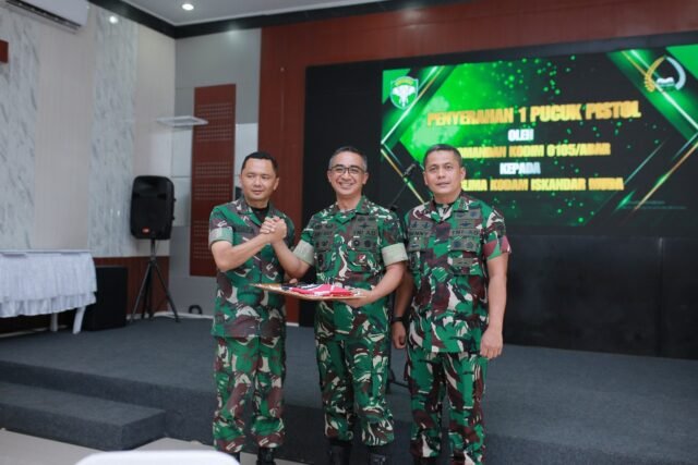 Aceh Barat – Upaya menjaga perdamaian dan stabilitas keamanan di wilayah Aceh kembali ditunjukkan melalui penyerahan senjata api sisa konflik oleh masyarakat kepada Tentara Nasional Indonesia (TNI). Panglima Kodam Iskandar Muda (Pangdam IM), Mayor Jenderal TNI Joko Hadi Susilo, S.I.P., menerima langsung penyerahan tersebut dari Komandan Kodim (Dandim) 0105/Aceh Barat, Letkol Inf Hendra Mirza, S.E., M.Si., dalam rangkaian kunjungan kerjanya ke Kodim 0105/Aceh Barat, Kamis (25/9/2025).
