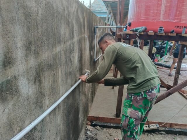 Permudah Warga Dapat Air Bersih, Satgas TMMD ke-126 Kodim 1207/Pontianak Pasang Tandon dan Paralon Air