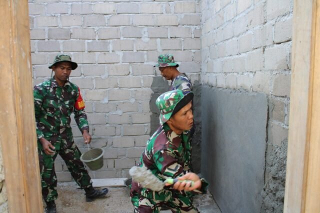 Warga sekitar juga tampak antusias terlibat dalam pekerjaan, membantu membawa bahan dan mempersiapkan peralatan. Kehadiran program TMMD ini tidak hanya memberikan rumah layak huni, tapi juga mempererat kebersamaan antara TNI dan masyarakat.