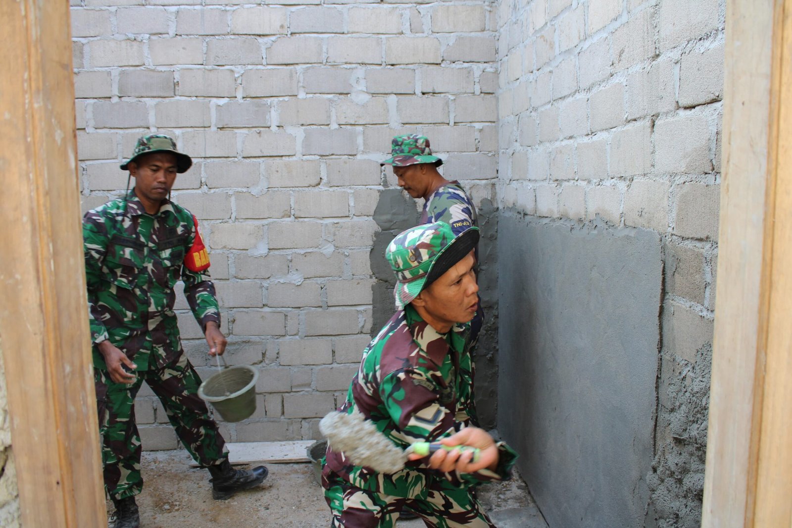 Salah satu personel Satgas menyampaikan pentingnya tahap plesteran karena akan menentukan hasil akhir rumah, baik dari segi kekuatan maupun tampilan.