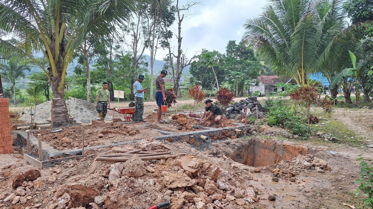 Konawe – Pembangunan sasaran fisik Program TMMD ke-125 Kodim 1417/Kendari terus berlanjut. Di Desa Nekudu, Kecamatan Asinua, personel Satgas TMMD bersama masyarakat mulai memasuki tahap pemasangan pondasi untuk fasilitas MCK umum, Sabtu (26/7).