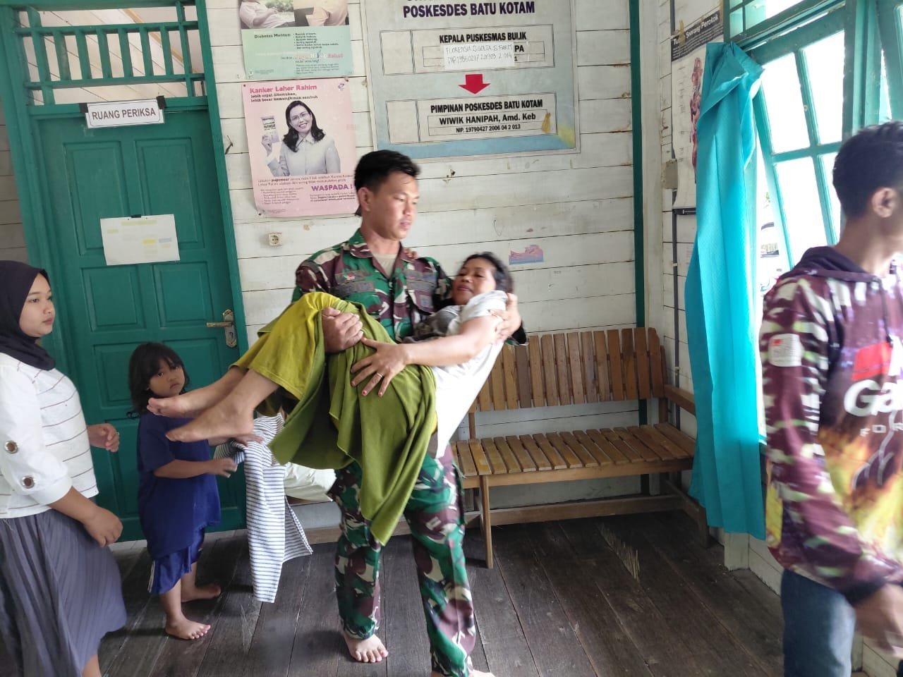 Dengan menggunakan ambulans desa KH 8851 RD, Praka Deka mengantar langsung Erna ke Poskesdes Desa Batu Kotam untuk mendapatkan penanganan medis lebih lanjut.