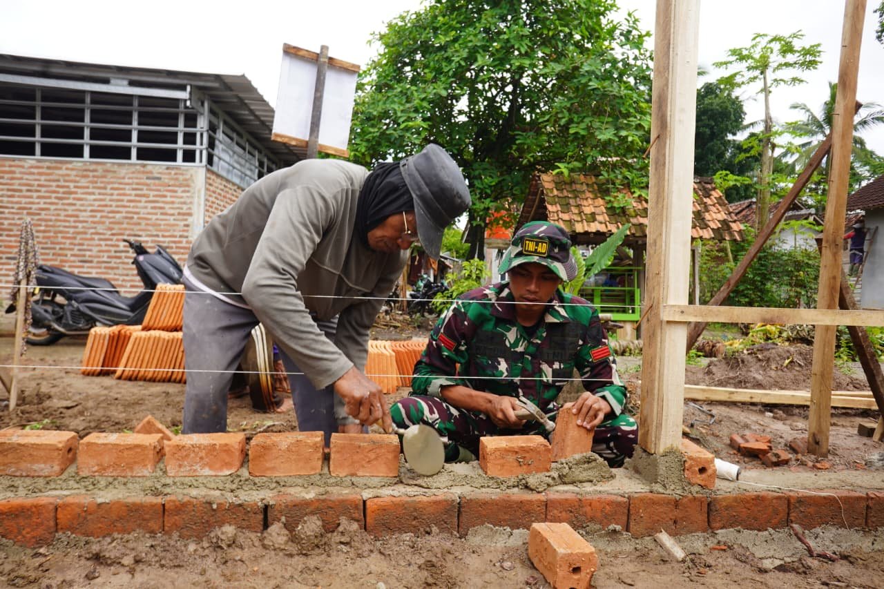 Pesawaran – Pada program TNI Manunggal Membangun Desa (TMMD) ke-127, Praka Watum dari Kodim 0421/Lampung Selatan menunjukkan semangat tinggi dalam membantu pemasangan batu bata pada rehabilitasi Rumah Tidak Layak Huni (RTLH) milik Bapak Khoirul Anwar. Kegiatan ini berlangsung di Desa Tanjung Rejo, Kecamatan Way Khilau, Kabupaten Pesawaran.