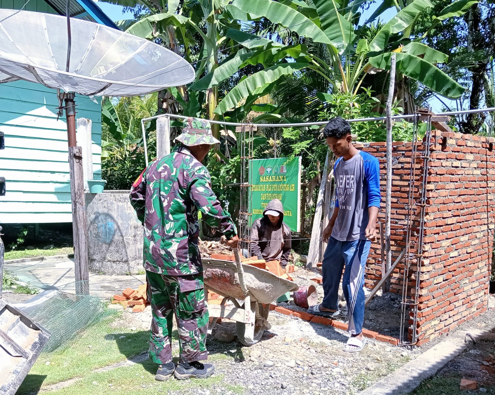 NAGAN RAYA – Harapan masyarakat akan ketersediaan air bersih perlahan mulai terwujud melalui pembangunan bak penampungan air dalam program TNI Manunggal Membangun Desa (TMMD).