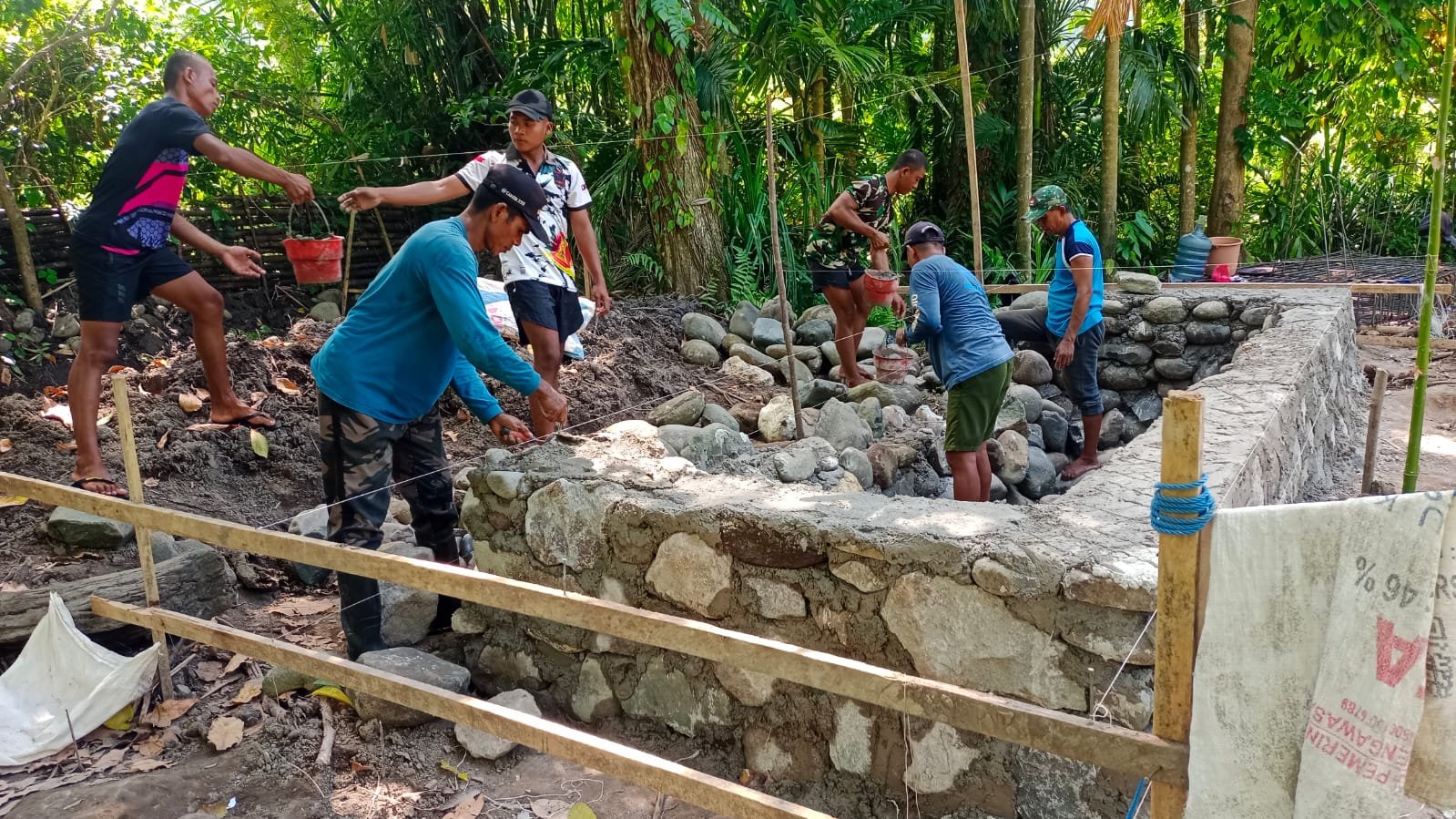Di dalam proses pembangunan ini, aparat TNI dan masyarakat lokal bekerja sama dalam merakit rangka besi serta melakukan pemasangan pondasi foot plat di tepi jembatan. Aktivitas ini sangat penting dalam fase awal dari proyek pembangunan jembatan gantung yang direncanakan berdimensi 60 meter.