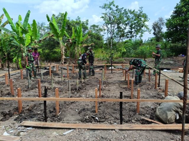 Di bawah terik matahari, para prajurit tanpa lelah melanjutkan pembangunan rumah tidak layak huni (RTLH) milik Kai Salamun. Berdasarkan laporan Peltu Hari Maladi pada Jumat (10/10/2025), progres pembangunan menunjukkan hasil menggembirakan. Pemasangan tongkat telah mencapai 80 persen, sedangkan glagar dan tiang utama masing-masing mencapai 40 persen.