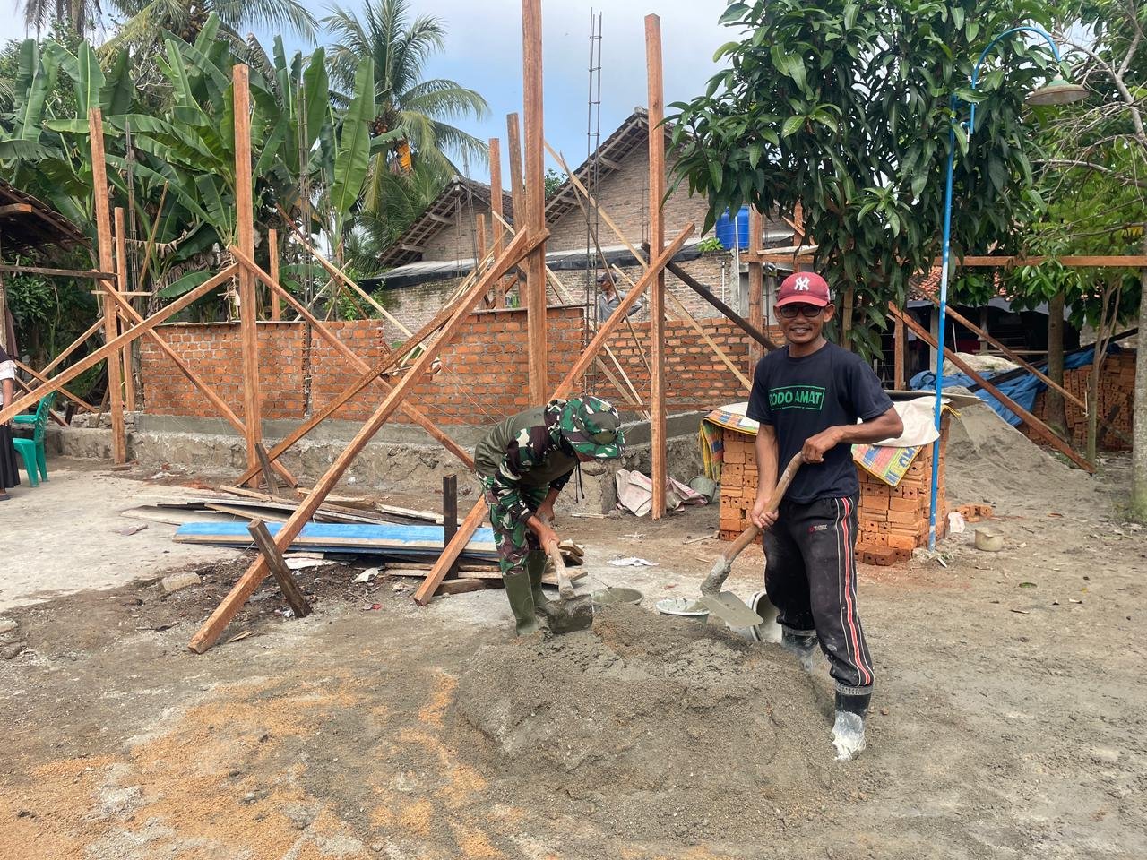 Saat ini, proses pembangunan RTLH telah mencapai tahap pemasangan batu bata. Anggota Satgas TMMD dan masyarakat setempat bergotong royong untuk menyelesaikan pembangunan dinding rumah agar hunian bagi penerima manfaat segera siap untuk ditempati.