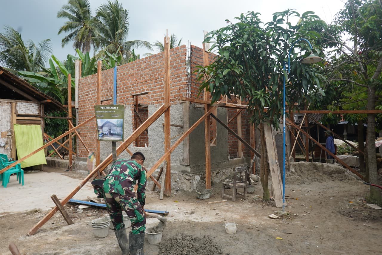Pesawaran — Pelaksanaan program TNI Manunggal Membangun Desa (TMMD) ke-127 yang diadakan oleh Kodim 0421/Lampung Selatan menunjukkan perkembangan yang signifikan. Salah satu target program, pembangunan Rumah Tinggal Layak Huni (RTLH) milik Bapak Khoirul Anwar di Desa Tanjung Rejo, kini telah mencapai tahap pemasangan batu bata dan plester pada bagian depan rumahnya.