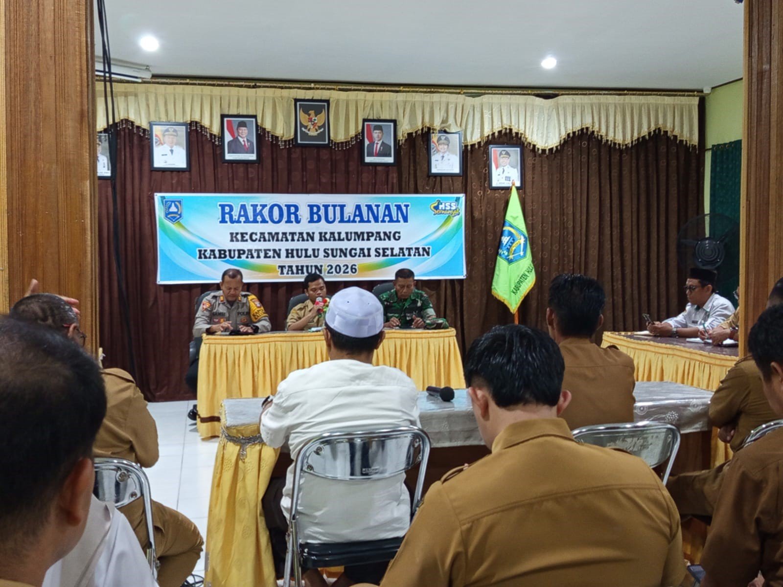 HULU SUNGAI SELATAN – Kecamatan Kalumpang, Kabupaten Hulu Sungai Selatan (HSS), menggelar Rapat Koordinasi (Rakor) lintas sektoral di Aula Kecamatan Kalumpang Kabupaten Hulu Sungai Selatan (HSS) yang dihadiri oleh Kapten Inf Tugino, Danramil 1003-06/Simpur-Kalumpang, bersama pemerintah dan stakeholder setempat. Rabu (28/1/26)