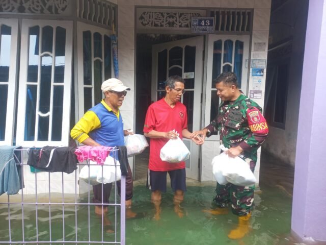 Dibantu Babinsa dan Relawan, Katanya, proses distribusi dilakukan dengan penuh semangat harus melewati medan yang cukup sulit akibat genangan air dan akses yang terbatas. “Meskipun demikian, bantuan berhasil sampai ke warga yang sangat membutuhkan,”ujarnya