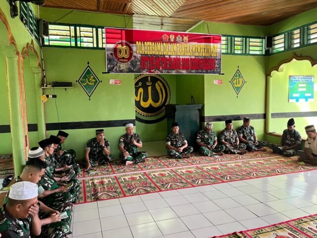 Dalam suasana penuh kekhusyukan, seluruh peserta memanjatkan doa sebagai ungkapan rasa syukur atas pengabdian panjang TNI kepada bangsa dan negara, sekaligus memohon keberkahan, keselamatan, serta kekuatan bagi seluruh prajurit dalam melaksanakan tugas menjaga kedaulatan dan keutuhan NKRI.