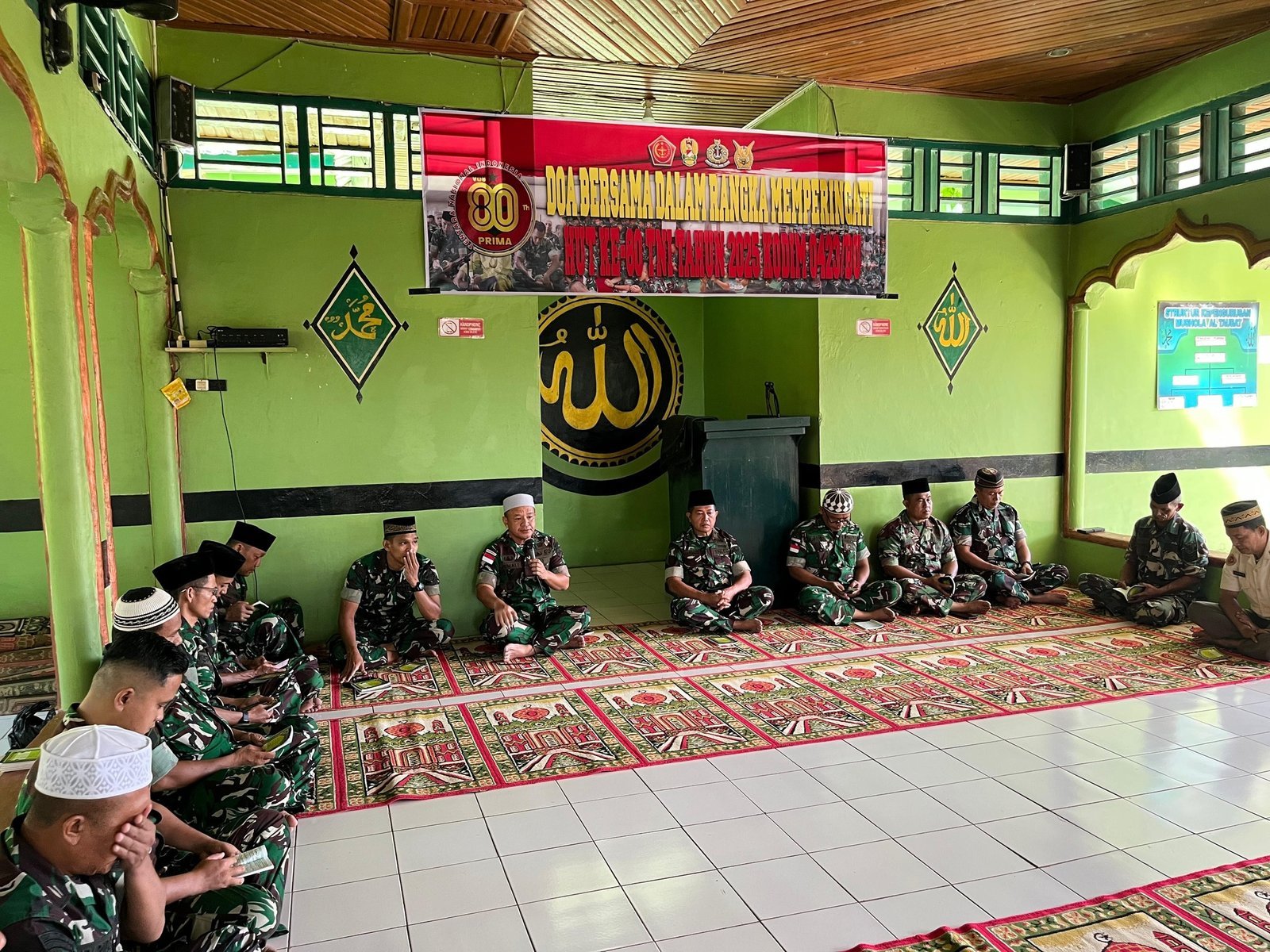 Dandim 0423/BU dalam sambutannya menyampaikan bahwa doa bersama ini merupakan bentuk refleksi spiritual dan rasa syukur atas perjalanan TNI yang telah mengabdi selama delapan dekade untuk rakyat dan tanah air.