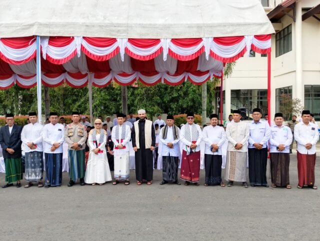 Upacara dengan tema “Mengawal Indonesia Merdeka, Menuju Peradaban Dunia” ini dipimpin langsung oleh Bupati Aceh Barat Tarmizi, S.P., M.M., dan dihadiri oleh unsur Forkopimda. Turut hadir Danrem 012/TU yang diwakili oleh Pasi Komsos Mayor Czi Abdul Rahim Lubis, S.T., Ketua DPRK Siti Ramazan, S.E., Kakan Kemenag Abrar Zym, S.Ag., M.H., Kadis Syariat Islam M. Isa, S.Pd., Kasat Binmas Polres Aceh Barat AKP Iswandi, Ketua MAA Tgk. H. Mawardi Nyak Man, Ketua MPU Tgk. H. Mahdi Kari Usman, S.Pd.I., para asisten, SKPK, SKPD, camat, pimpinan dayah, serta para santri se-Kabupaten Aceh Barat.