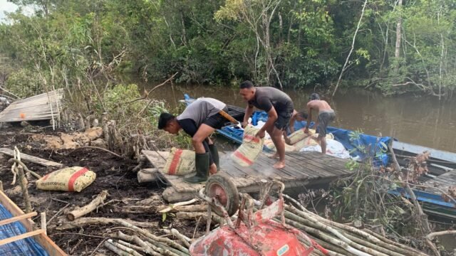Talio, 27 Mei 2025 – Pembangunan jalan desa dalam program TMMD Ke-120 Kodim 1012/Buntok terus berlanjut. Senin (26/5), Satgas TMMD bersama warga menaikkan material semen ke lokasi jalan yang sedang dibangun di Desa Talio, Kecamatan Karau Kuala, Kabupaten Barito Selatan.