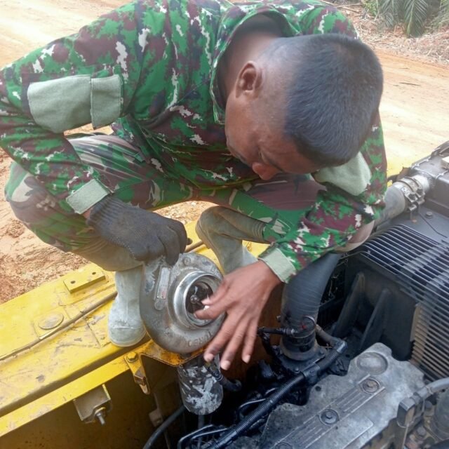 Lamandau – Anggota Satgas TMMD Reguler ke-125 Kodim 1017/Lamandau menghadapi kendala teknis saat alat berat yang digunakan untuk pengerjaan sasaran fisik mengalami gangguan, Sabtu (08/09/2025).