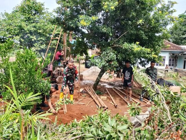 Pekerjaan dilakukan dengan penuh semangat gotong royong antara personel TNI dan warga. Mereka saling bahu-membahu menyiapkan adukan semen, mengukur lokasi, hingga menanam besi pondasi yang menjadi dasar utama tower air.