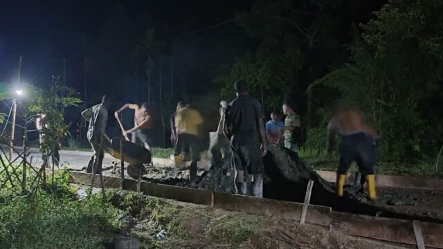 “Meski lelah, semangat kami tetap tinggi karena semua ini untuk kemajuan kampung,” ujar salah satu warga yang turut membantu proses pengecoran.