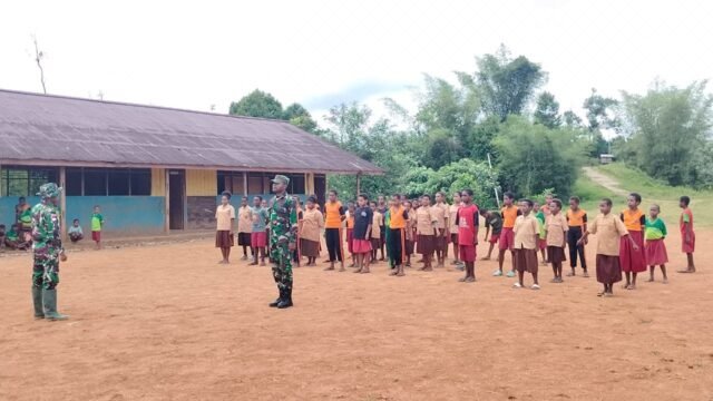 Waropko, Boven Digoel — Dalam upaya menanamkan nilai-nilai kedisiplinan sejak usia dini, Satuan Tugas (Satgas) TMMD ke-126 Kodim 1711/Boven Digoel melaksanakan kegiatan non-fisik berupa pelatihan Peraturan Baris Berbaris (PBB) bagi siswa-siswi SD YPPK Isidorus Waropko, Jumat (17/10/2025).