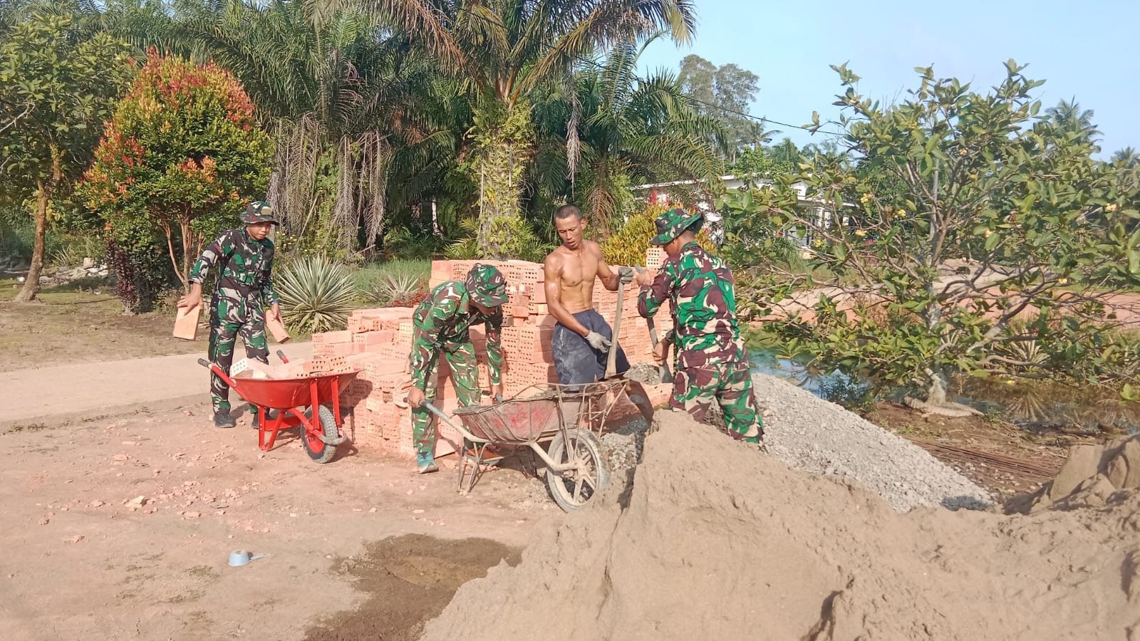 Pulau Rimau – Anggota Satuan Tugas (Satgas) TNI Manunggal Membangun Desa (TMMD) ke-127 Kodim 0430/BA melakukan pemasangan pondasi untuk rumah tidak layak huni yang dimiliki oleh Ibu Suharti. Kegiatan ini berlangsung di Jalur Dua, Dusun I, Desa Wonosari, Kecamatan Pulau Rimau pada Minggu (22/2/2026).