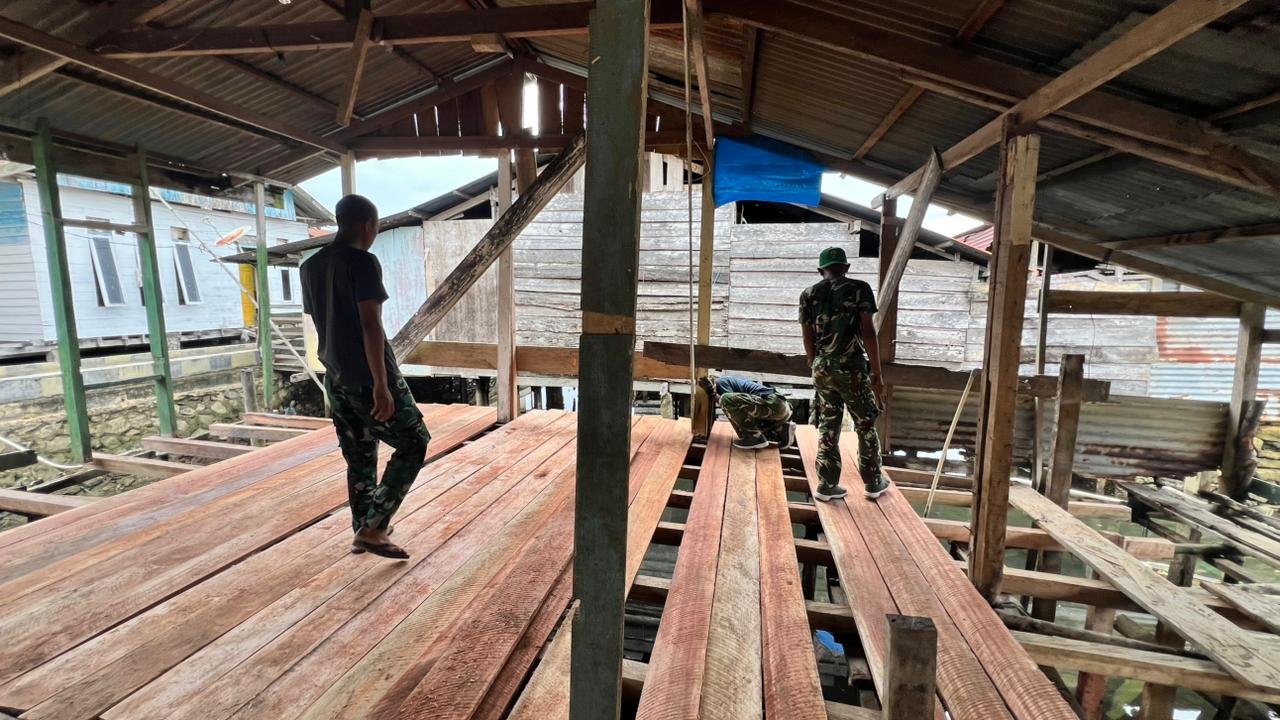Tahapan ini merupakan langkah vital dalam upaya menciptakan hunian yang layak bagi masyarakat. Dengan ketelitian yang tinggi, para prajurit TNI melakukan pemasangan papan lantai dengan presisi agar kekuatan dan kenyamanan dapat terjamin untuk penggunaan jangka panjang. Proses ini berlangsung dalam suasana gotong royong, melibatkan warga setempat yang turut serta menyukseskan kegiatan tersebut.